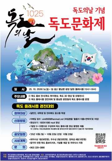 '독도사랑 문화진흥원'은 전주시 풍남문 광장에서 10월 25일(토) ‘독도의 날’을 기념하는 시민 참여형 독도문화제 및 플래시몹 경진대회를 개최했다.