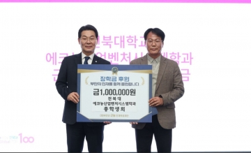 이와 함께 전북대학교 에코농산업벤처시스템학과 총학생회에서도 후배들의 학업 지원과 지역사회 환원에 힘을 보태기 위해 장학금 100만 원을 기탁하며 나눔에 동참했다.