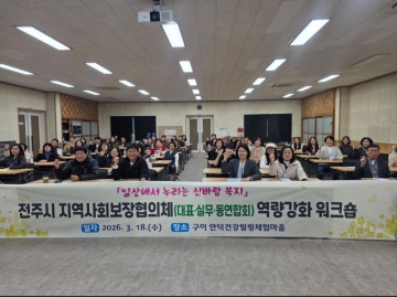 [한국수소환경신문] 전주시 복지 사각지대 해소를 위해 앞장서 온 지역사회보장협의체 위원들이 현장 중심의 복지 전문성을 강화하고 민·관 소통의 벽을 허물기 위해 한자리에 모였다.
