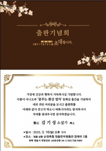2024년 윤동주별문학상을 수상한 김기성 작가는 오는 3월16일 정읍에서 출판기념회를 개최한다고 밝혔다.