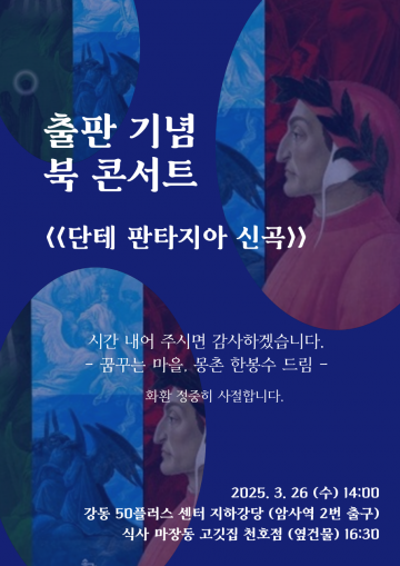 읽기 어려운 단테의 <신곡>을 어떻게 하면 독자가 재미있게 읽으면서 단테의 메시지를 쉽게 이해할 수 있을까? 딱딱한 텍스트를 소설형식으로 풀어서 설명과 평론을 곁들인 <단테 판타지아 신곡>(한봉수 평설, 솔과학)이 2025년 3월 출간되었다. 문학평론가 한봉수는 청소년이든 어른이든 이 책을 통해 고전 독서의 기쁨을 갖길 바라는 마음으로 책을 출간하였다고 한다.