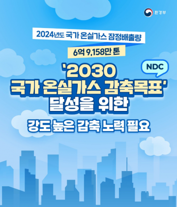 [한국수소환경신문] 환경부 소속 온실가스종합정보센터(센터장 최민지)는 ‘2024년도 국가 온실가스 잠정배출량’을 산정한 결과, 6억 9,158만톤에 이른다고 밝혔다. 온실가스종합정보센터는 국가 온실가스 배출량 확정치*(2024년도 확정치는 2026년 하반기 공개)보다 1년여 앞서 국가 온실가스 잠정배출량을 추산해 2020년부터 매년 공개하고 있다.