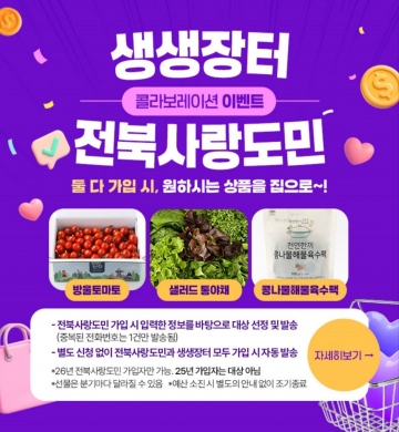 도는 이번 프로모션을 통해 전북생생장터와 전북사랑도민증의 연계 가입을 확대하고, 도민과 출향민이 전북 농특산물을 일상적으로 접할 수 있는 소비 기반을 강화해 나갈 계획이다.